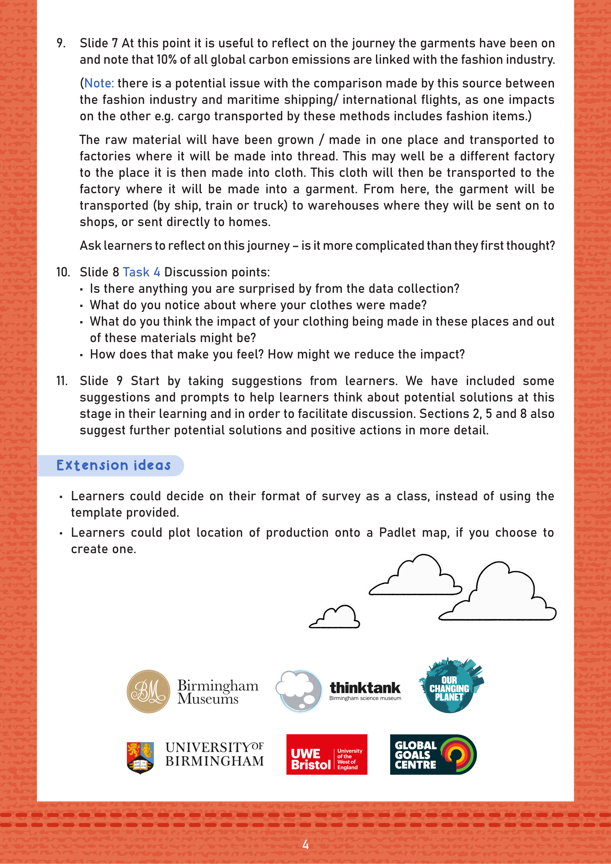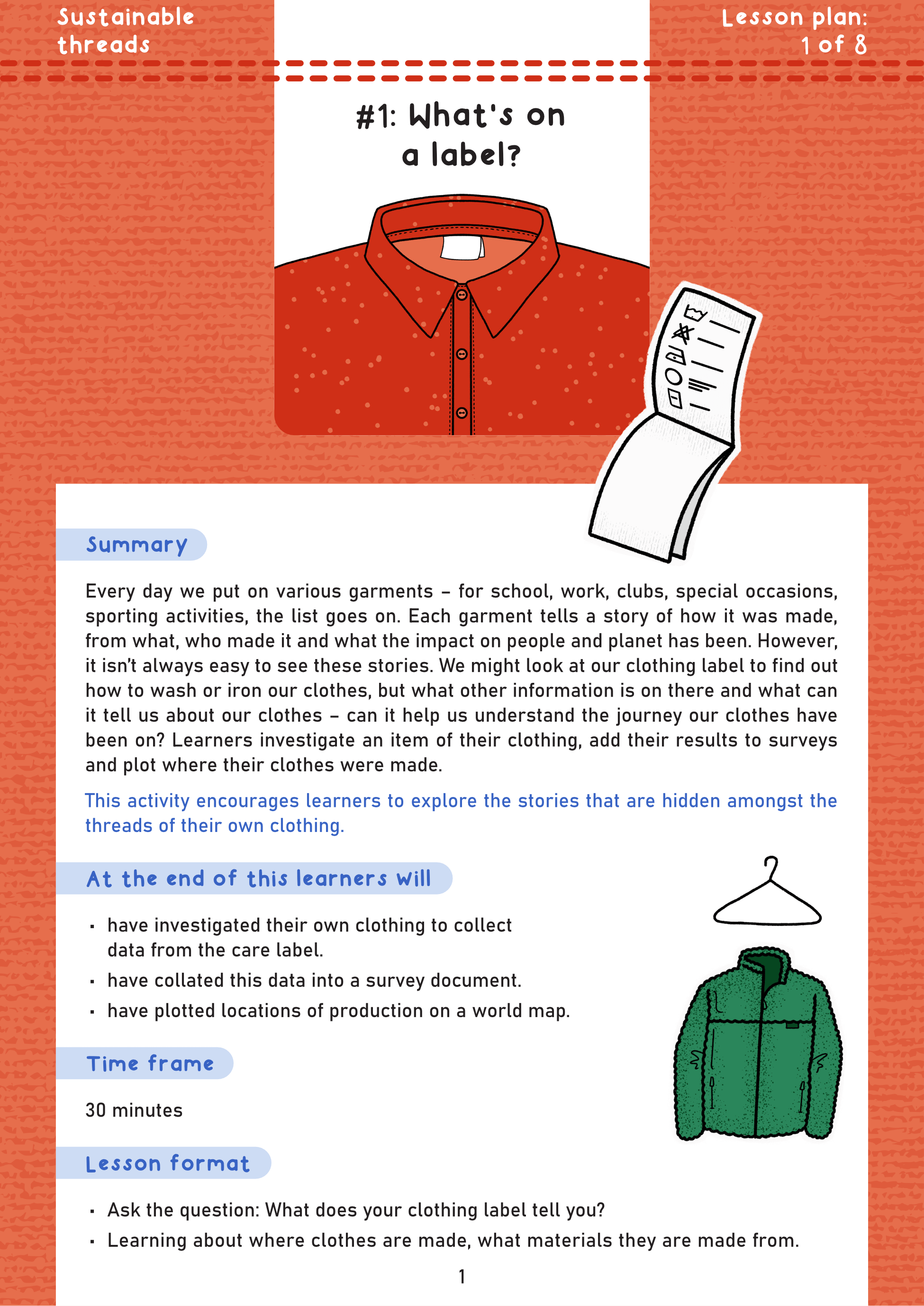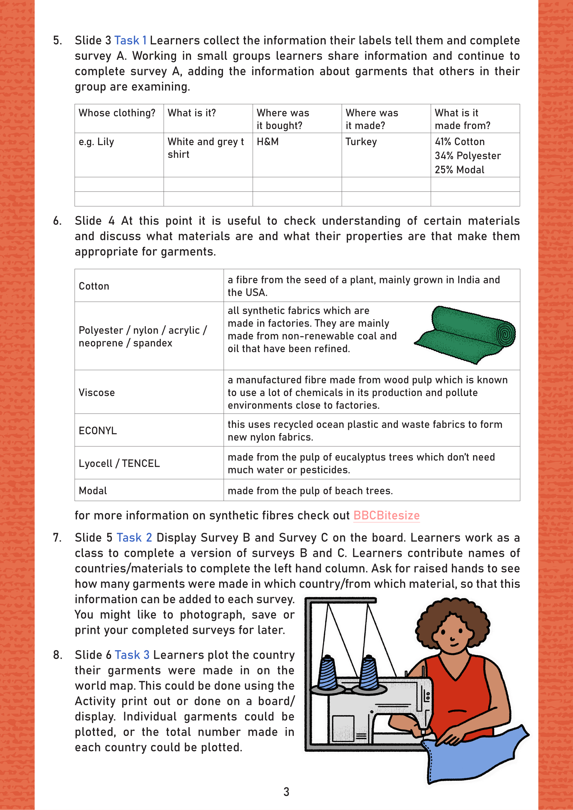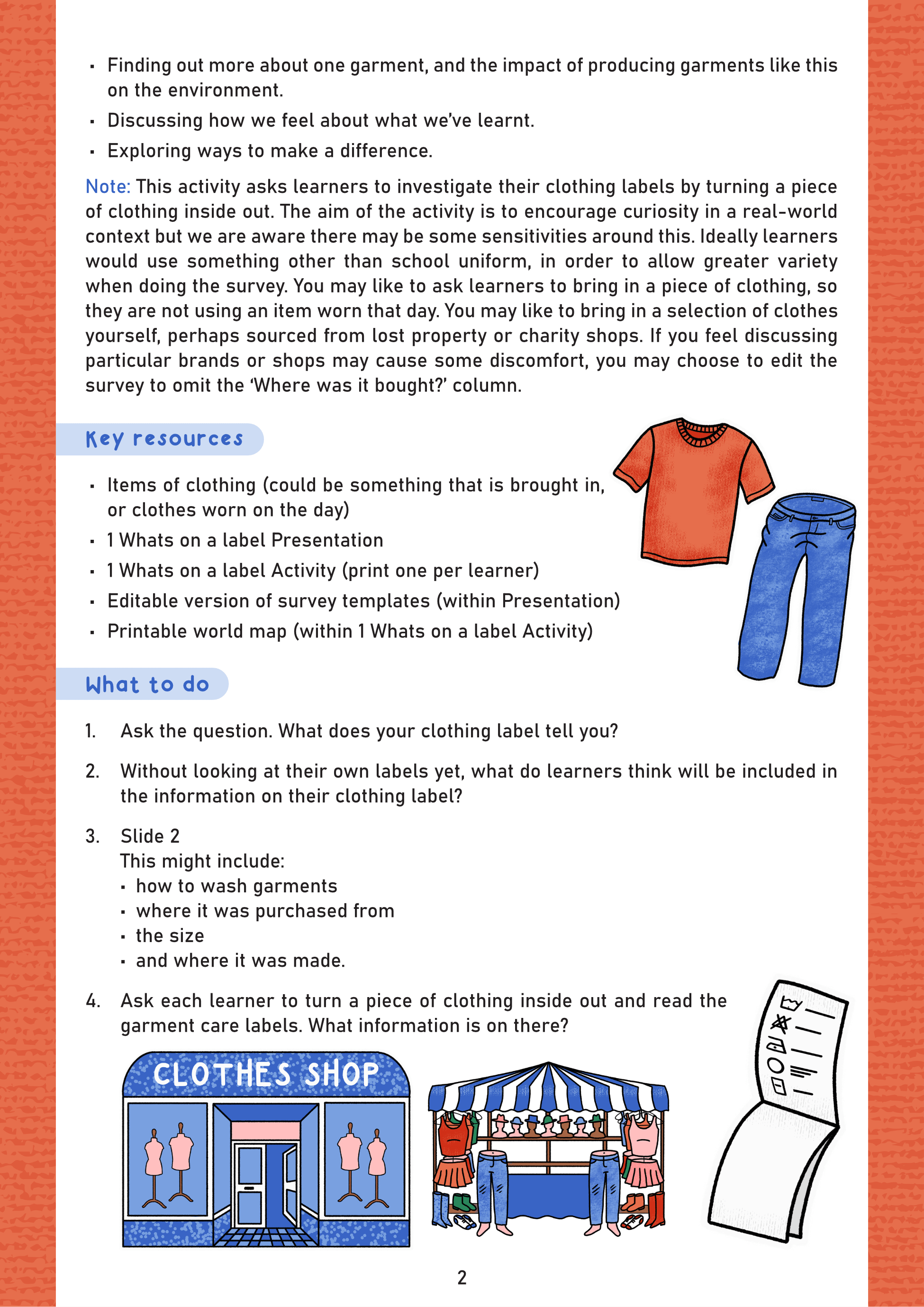 Layout design for schools resources to teach students about fast fashion. Downloadable presentations for use in the classroom. Cartoon illustrations and header typeface by Ellie Shipman. The full set is available here.