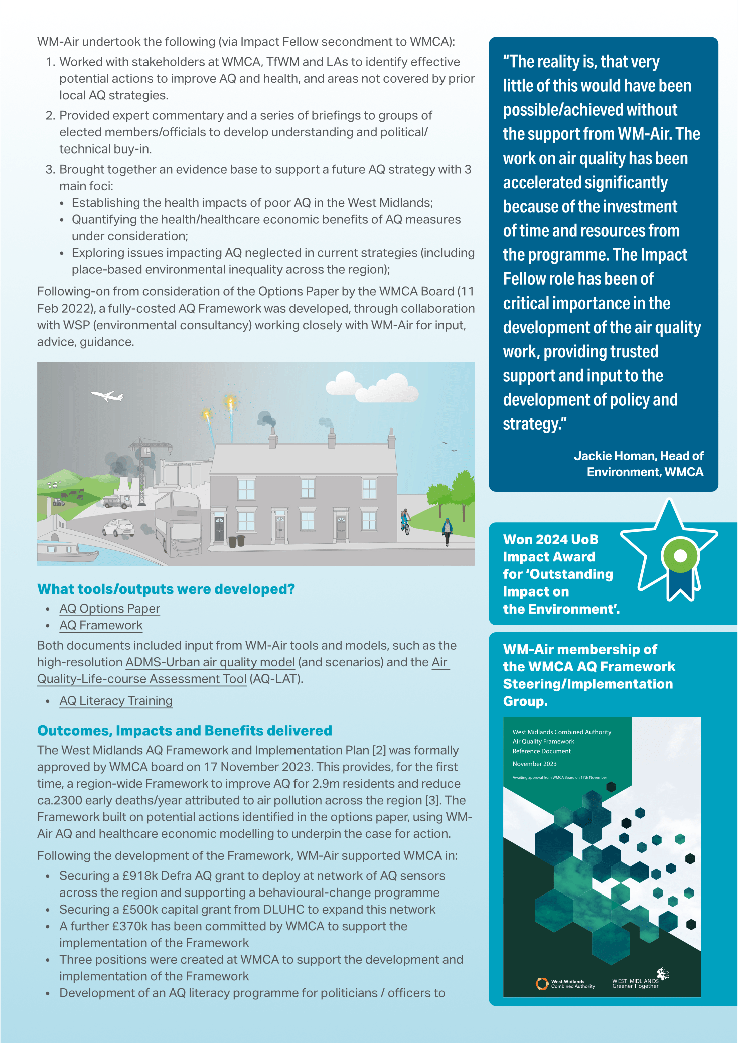Design, layout and illustrative elements for a series of Impact Case Studies for WM-Air.