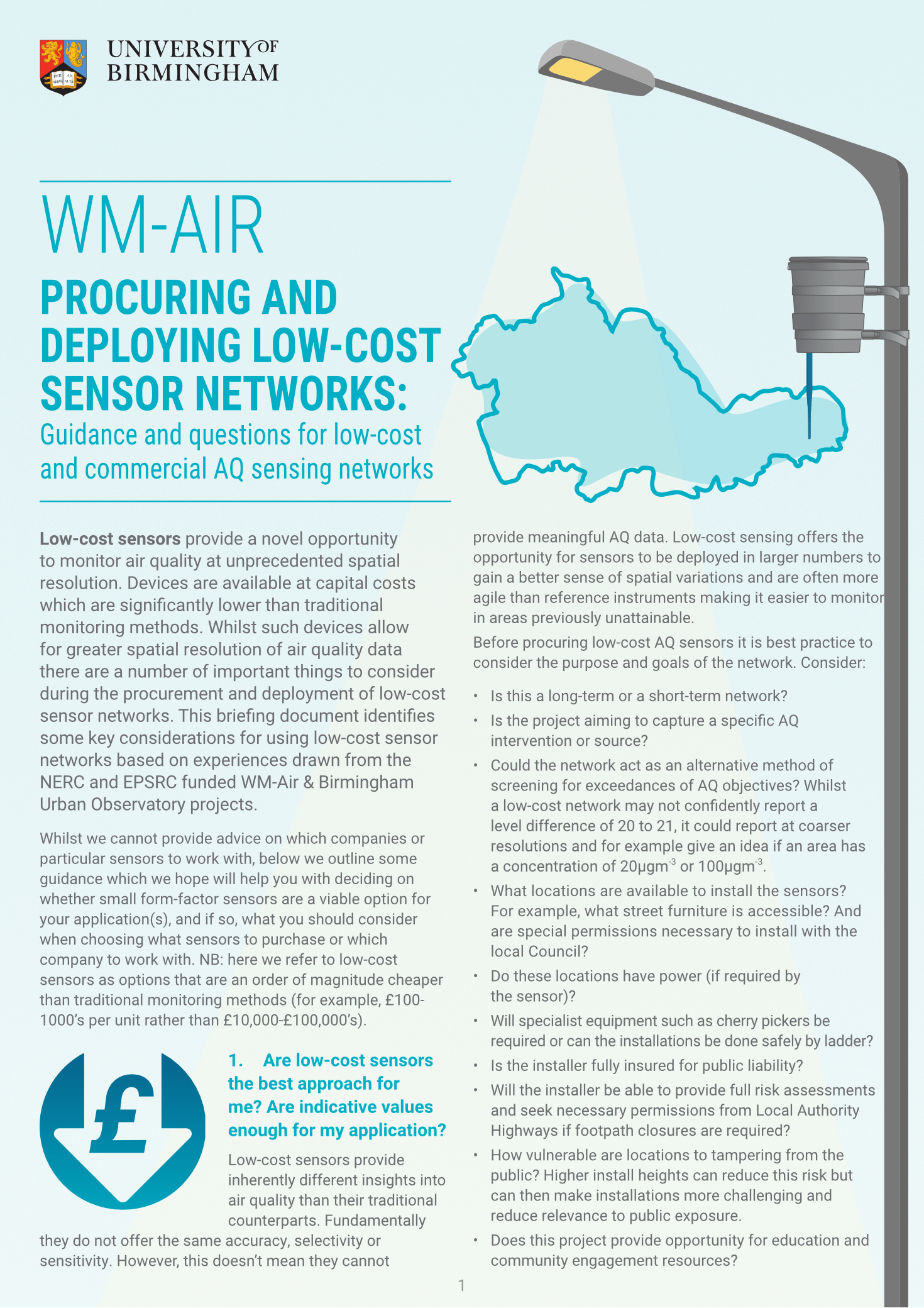 Procuring and deploying low-cost sensor networks. Leaflet design, layout and illustrative elements for a WM-Air project.