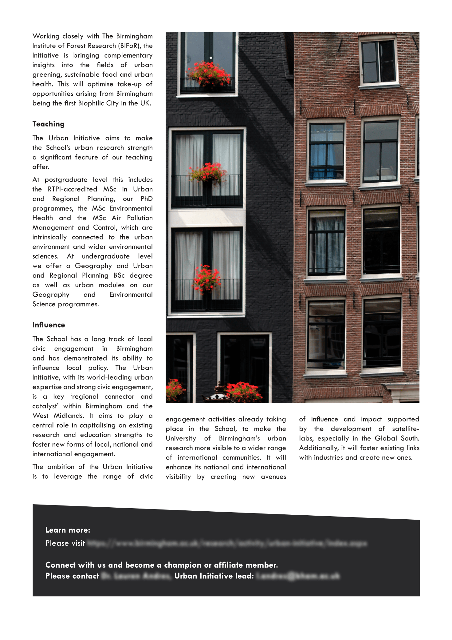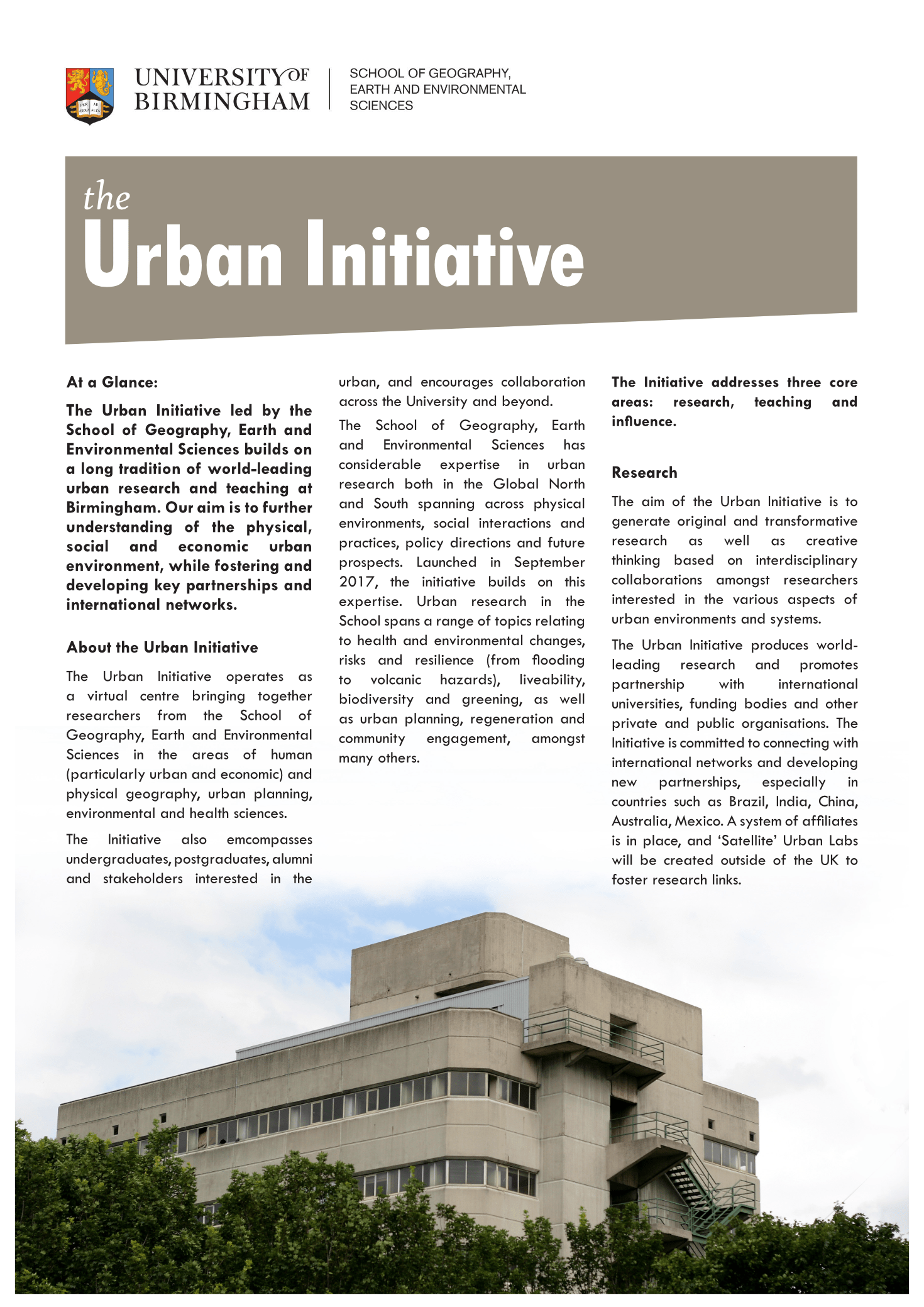 Design, photography and layout for a leaflet for the Urban Initiative Centre at UoB.